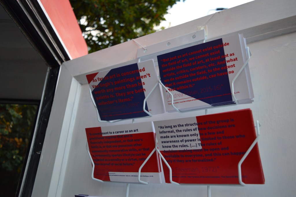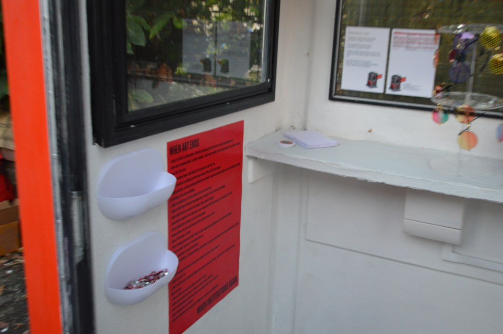 The Art Licence shop is a playful look into the dialogue between artists and institutions, acknowledging the absurdity of greater institutional structures by merging the openly accessible Kabinett kiosk with the ubiquitously gated practice of collecting art. This creates a dynamic and interactive art experience that engages visitors directly, both during and after their visit to the exhibition.
