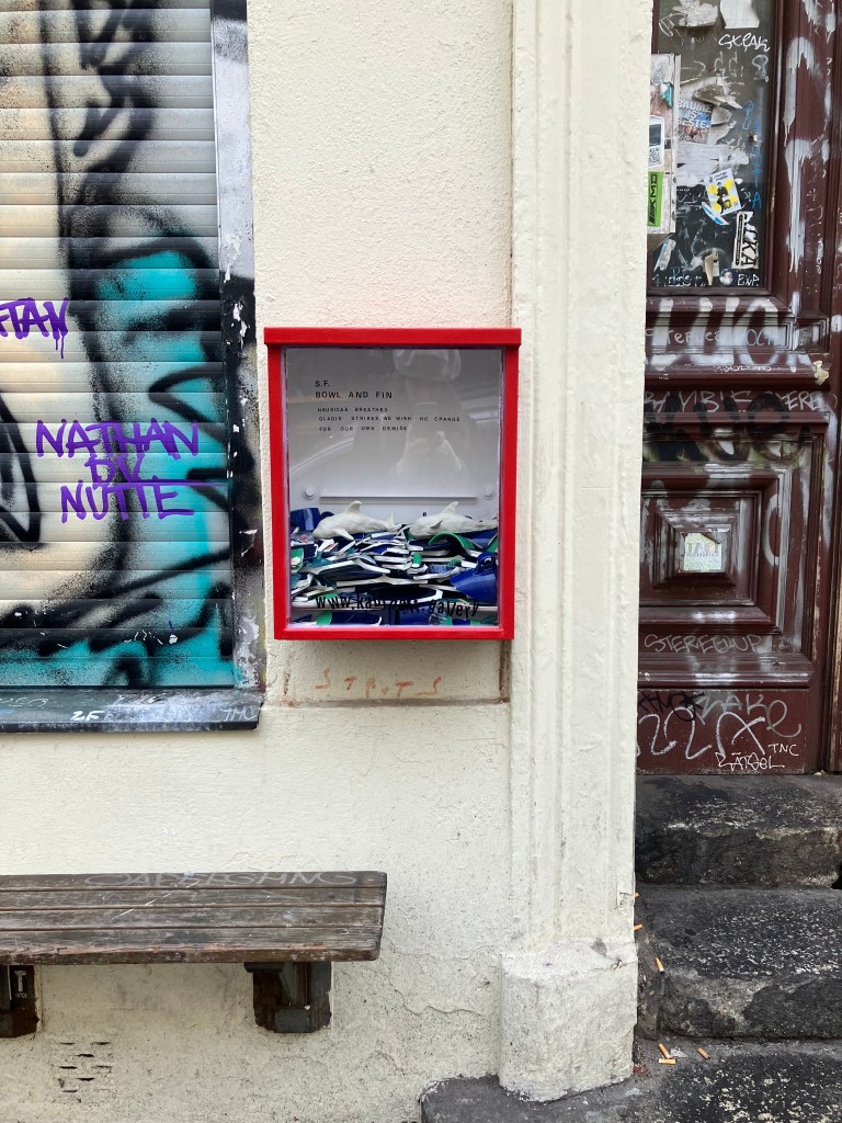 In reference to the work, S.F. says “my comment here is on the human projection onto the orcas. With no revolution in sight, people project that wish onto nature (and might even begin to enjoy natural disaster one day). This, to me, is similar to a depression. A general one, when we start to blame ourselves and destroy ourselves…auto-aggressive, like an animal in a cage.”