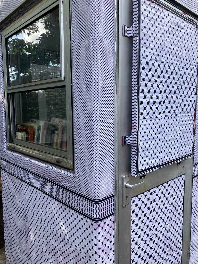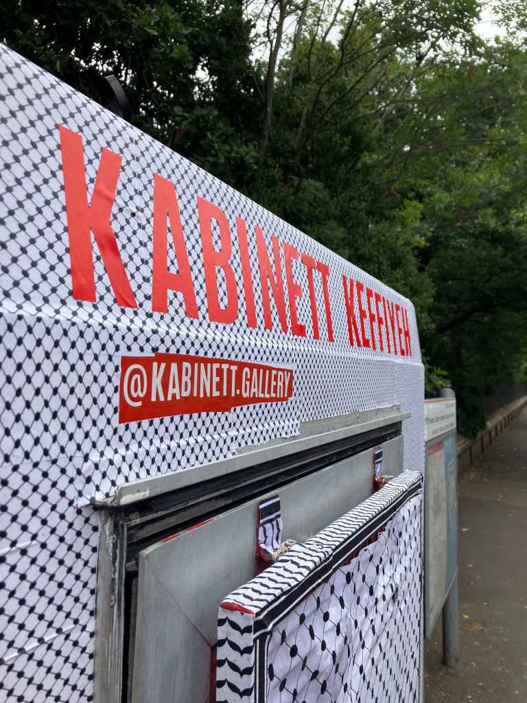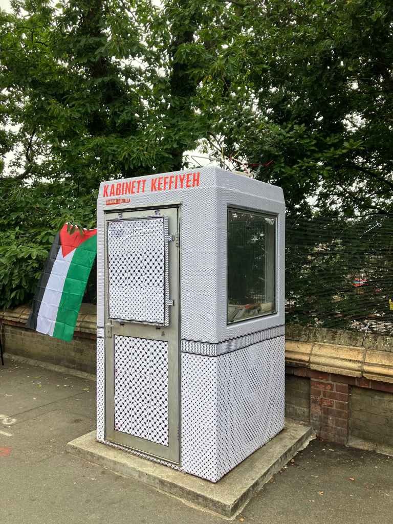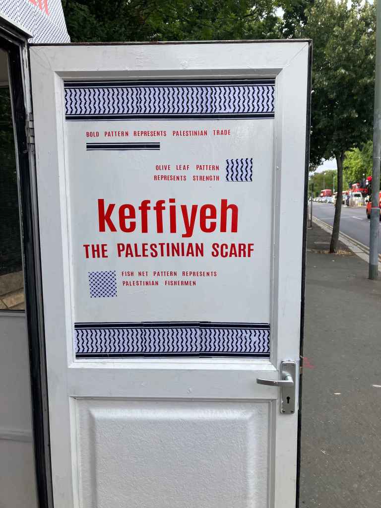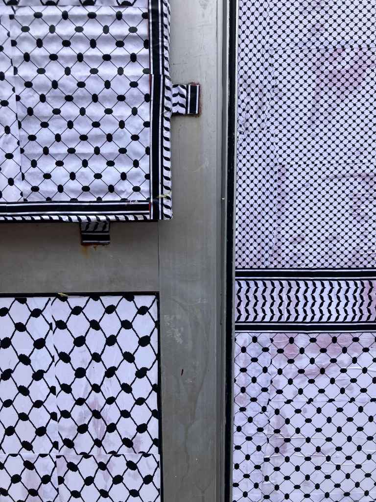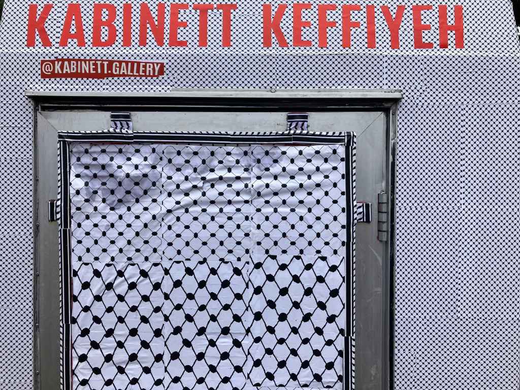 The Kabinett’s interior door includes an informative breakdown of the Palestinian keffiyeh and its various symbolic patterns.
