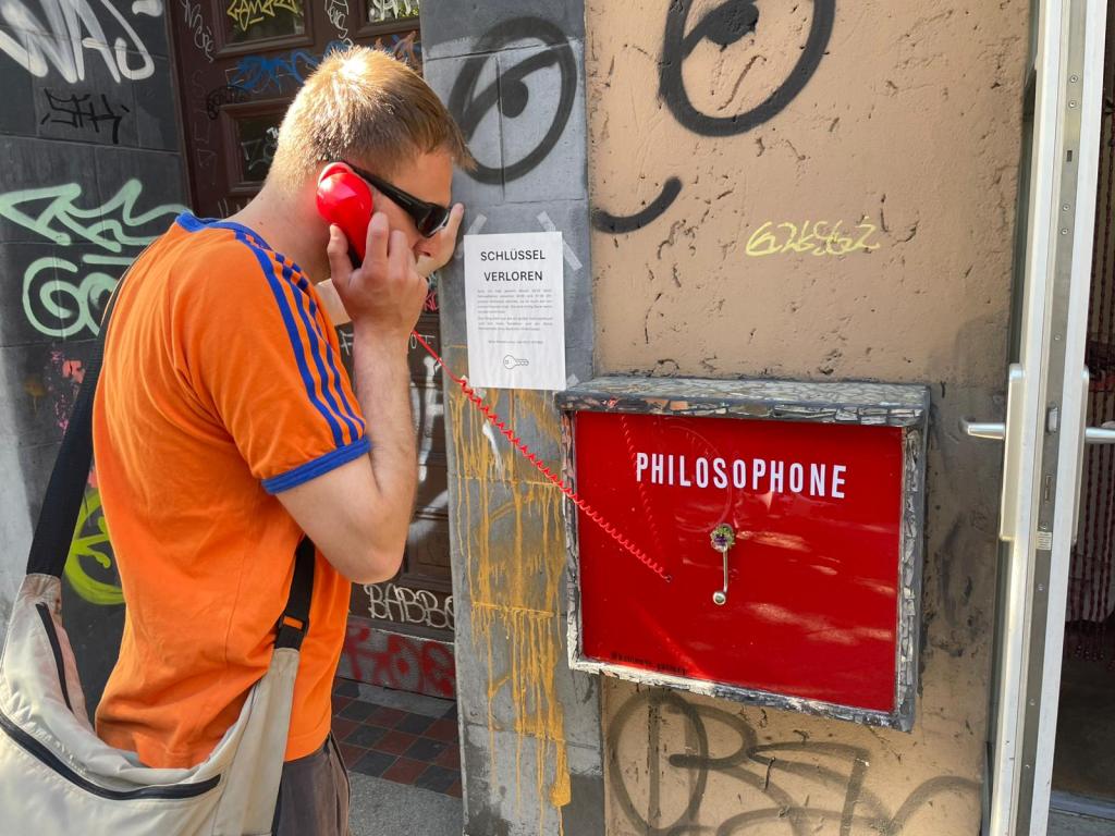 The inaugural phone, installed during 48 Stunden Neukölln, is situated at the Schön Kabinett. The phone plays an interview with Jane Doe, who describes restrictions on free speech, social media behaviour, and self expression that are enforced in her professional role at a prominent international art institution.