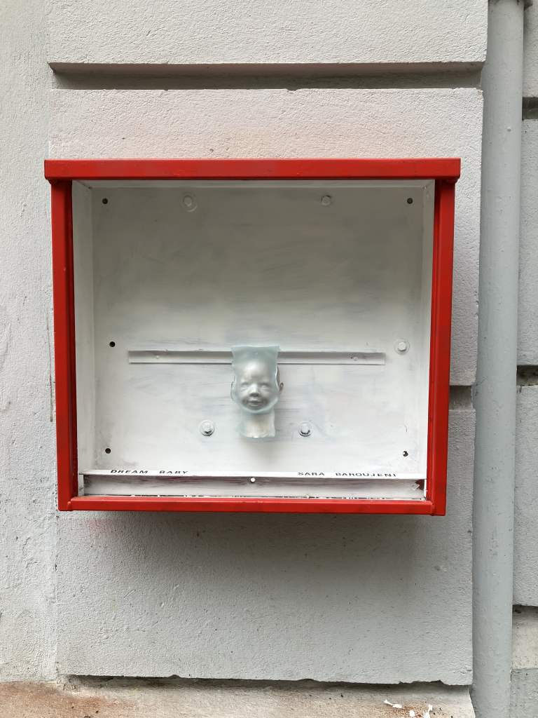 First exhibited at TAK Berlin in August 2025, Dream Baby is a sculptural installation by Berlin-based artist Sara Boroujeni that transform a quiet street corner into a site of tension, balance, and illusion.