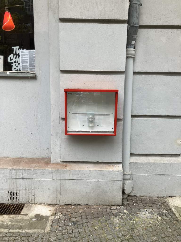 In contrast, a second Kabinett contains only a single face, elegantly suspended from a ledge as though it is floating. Alone, it hovers in space, its presence magnified by its isolation.