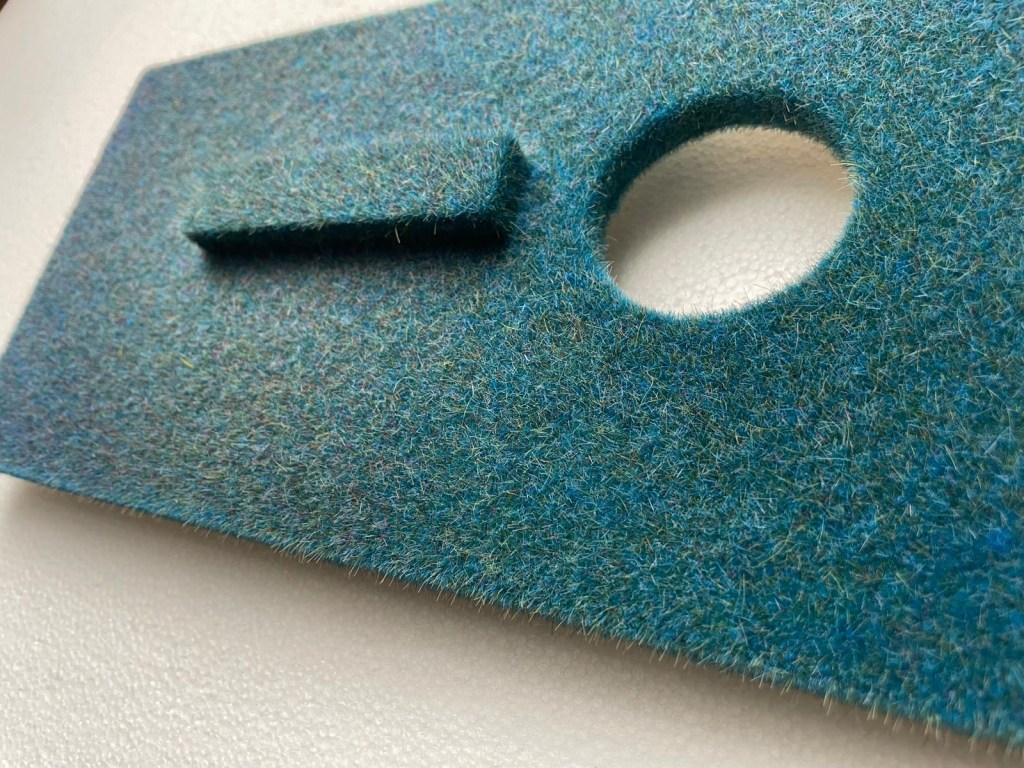 Using his signature flocking technique, Radaković envelops surfaces in a velvety texture, simultaneously concealing and elevating the material substrate.