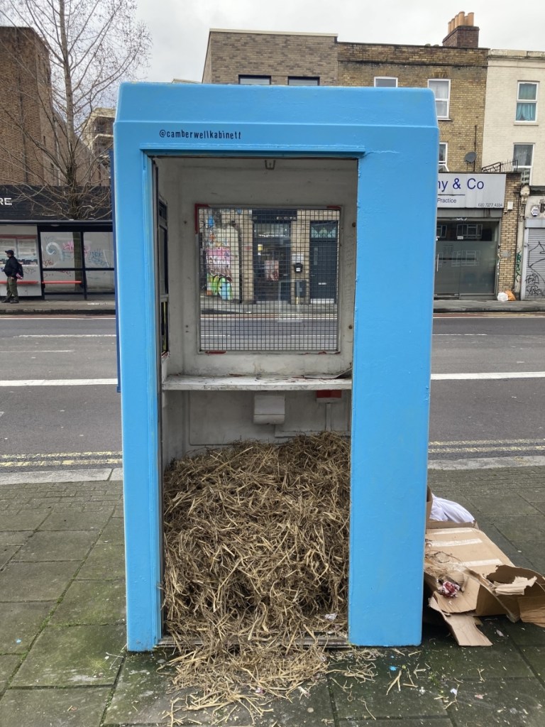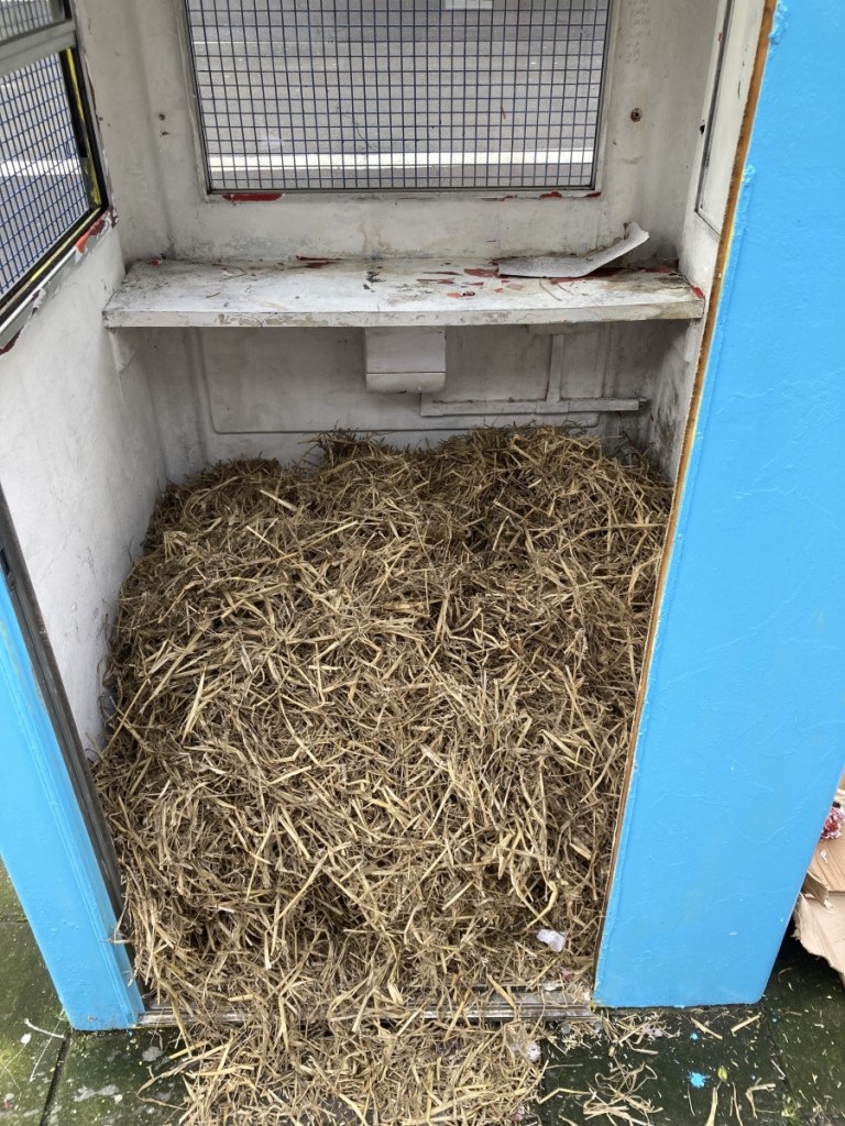 In compelling contrast to the surrounding landscape, a bale of straw transforms the Kabinett into an urban manger. The stark incongruence between the innately synthetic urban density of the area and the organic materiality of straw presents an unexpected juxtaposition between stigmatised habitats and the likelihood of encounters.